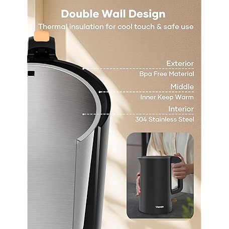 Thương hiệu Viemon là cái tên nổi tiếng được rất nhiều khách hàng trên thế giới chọn lựa. Với kiểu dáng đẹp mắt, sang trọng, sản phẩm Electric Kettle, 1.7L Double Wall Stainless Steel Cool Touch, Water Boiler & Heater, 1500W Hot Tea Pot, Auto Shut-Off & Boil Dry Protection, BPA-Free, Cordless Base & LED Indicator, Black là sự lựa chọn hoàn hảo nếu bạn đang tìm mua một món cho riêng mình.