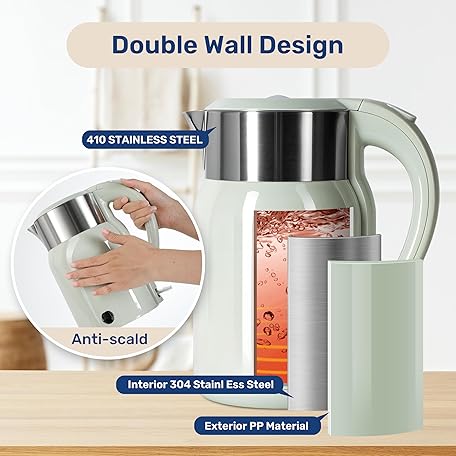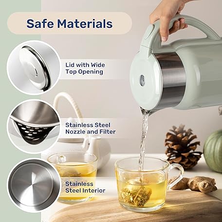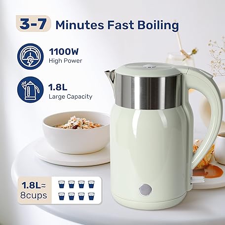 Electric Kettle, 1.8 Liter 1100W, BPA Free Fast Boiling Cordless Water Boiler, Auto Shut-Off and Boil Dry Protection, Easy Clean Wide Opening, Cool Touch Handle, 360° Rotation, Mint green