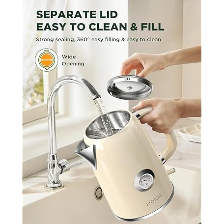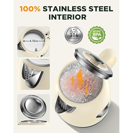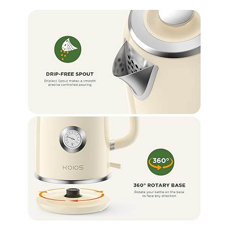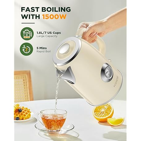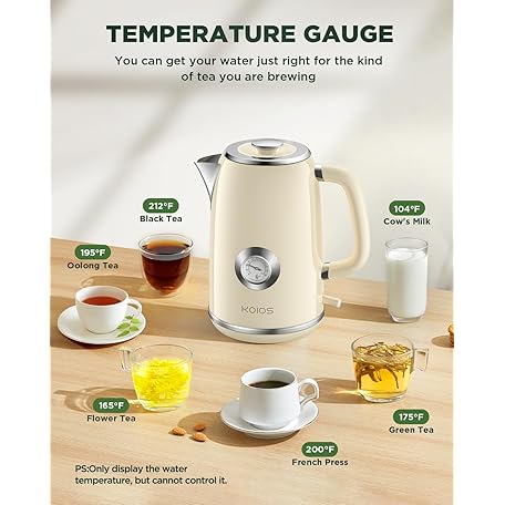 Electric Kettle 1.8L with Temperature Gauge, 1500W Fast Boiling Electric Tea Kettle, 100% Stainless Steel Retro-Style Hot Water Kettle Electric - Glowing LED Light, Auto Shut-Off & Boil-Dry Protection
