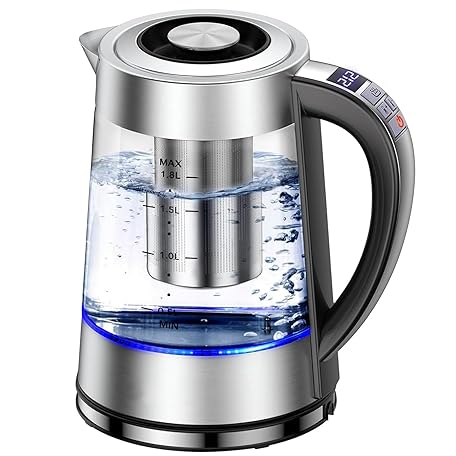 Electric Kettle with Temperature Control for Tea and Coffee, 1.8L 1500W, Keep Warm - Removable Infuser, Glass Tea Kettle Hot Water Boiler, BPA Free, Auto Shut Off, Boil-Dry Protection, Stainless Steel