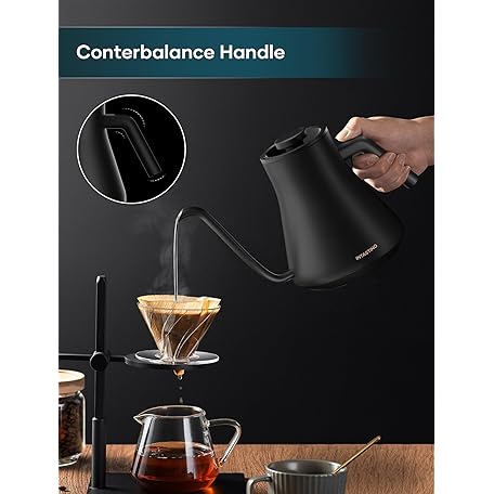 Thông tin sản phẩm Electric Kettles, Gooseneck Electric Kettle, ±1℉ Temperature Control, Stainless Steel Inner, Quick Heating, for Pour Over Coffee, Brew Tea, Boil Hot Water, 0.9L Black