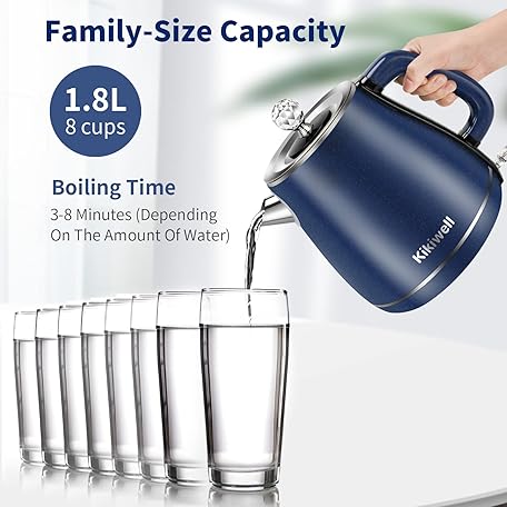 Thông tin sản phẩm Electric Kettles Stainless Steel for Boiling Water, Double Wall Hot Water Boiler Heater, Cool Touch Electric Teapot, Auto Shut-Off & Boil-Dry Protection, 120V/1200W, 1.8Liter, 2 Year Warranty(Blue)