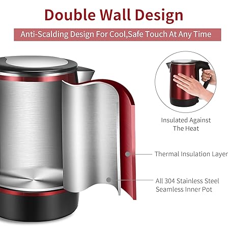 Thông tin sản phẩm Electric Kettles Stainless Steel for Boiling Water, Double Wall Hot Water Boiler Heater, Cool Touch Teapot, Auto Shut-Off & Boil-Dry Protection, 120V/1200W, 1.7 Liter, 2 Year Warranty (wine red)