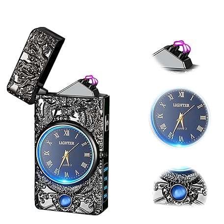 Electric Lighter with Clock Dial LED Power Display Plasma Dragon Lighters Windproof USB Rechargeable Lighter Cool Lighte Gifts for Men Women (Dragon -Black