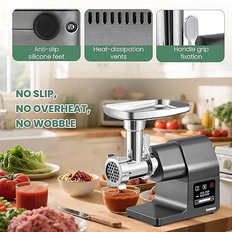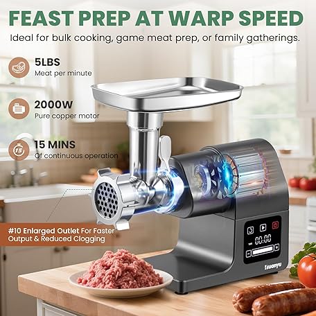 Electric Meat Grinder 2000W Heavy Duty, Touchscreen Control with Ice Shaver, Veggie Shredder, 2 Blades, 3 Plates, Sausage Stuffer & Kubbe Kit, #10 Size for Home Use