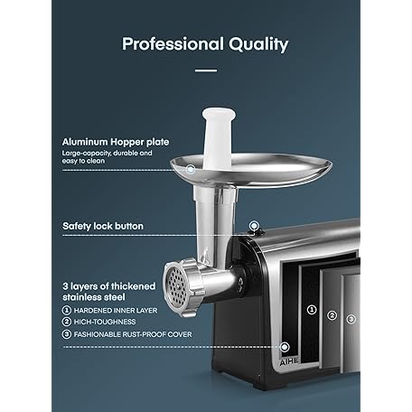 Thương hiệu Aiheal là cái tên nổi tiếng được rất nhiều khách hàng trên thế giới chọn lựa. Với kiểu dáng đẹp mắt, sang trọng, sản phẩm Electric Meat Grinder, Sausage Stuffer with 3 Sausage Tubes, 2 Blades, 3 Plates, 3200W Max, Meat Grinder Heavy Duty for Home Kitchen Use, Stainless Steel (Black) là sự lựa chọn hoàn hảo nếu bạn đang tìm mua một món cho riêng mình.