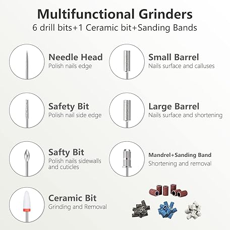 Thông tin sản phẩm Electric Nail Drill Machine Professional, Rechargeable Cordless Nail File with Bits Kit for Acrylic Gel Dip Nails, Efile Manicure and Pedicure Kit for Home Salon Grinding Polishing Removing, Gray
