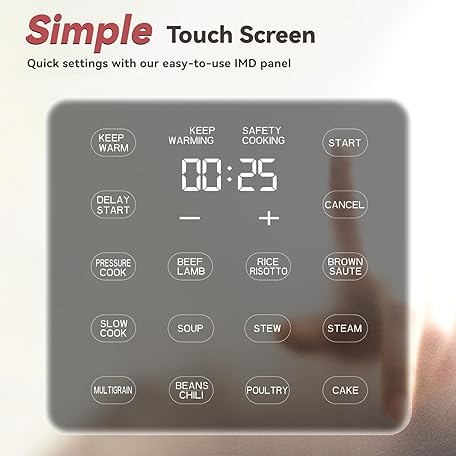 Electric Pressure Cooker 6 Qt, 9 Functions Programmable Instant Pot with IMD Touchscreen, Rice Cook, Slow Cook, Steam, Sauté, Warm, 16+ Safety Features, 1000W Silver