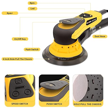 Thông tin sản phẩm Electric Random Orbital Sander Brushless 350W 3A Multi-function Variable Speed Corded Orbital Sanders Machine For Woodworking, Car, Drywall Sanding, Polishing…