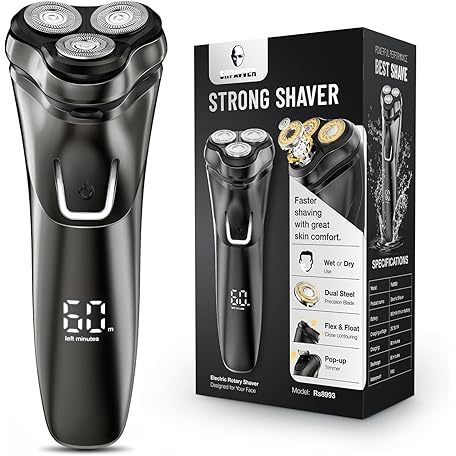 Electric Razor for Men Cordless: Wet/Dry Rotary Shaver Waterproof - USB Fast Charging & Sensitive Skin Care - Pop up Trimmer & Precision Blades Luxury Black Upgraded