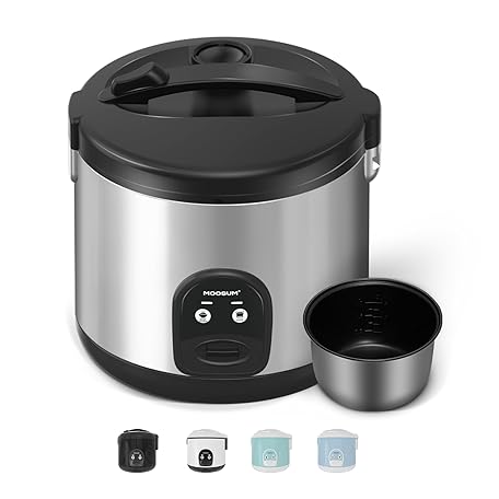 Electric Rice Cooker with One Touch for Asian Japanese Sushi Rice, 10-cup Uncooked/20-cup Cooked, Fast&Convenient Cooker with Steamer, Stainless Steel Housing and Auto Warmer