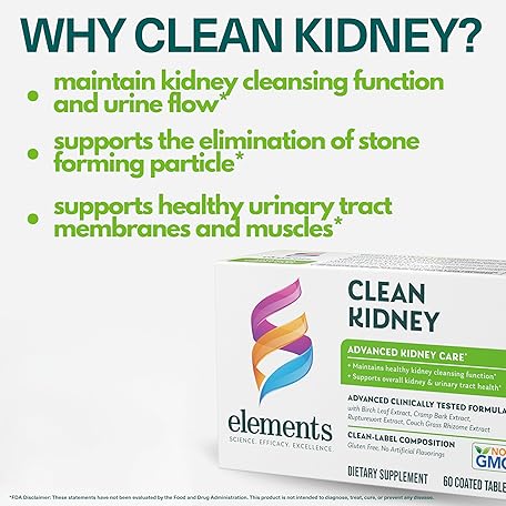 Thông tin sản phẩm Elements Clean Kidney, 60 Tablets (30 Day Supply), Supports Normal Kidney and Urinary Tract Function, Gluten Free,