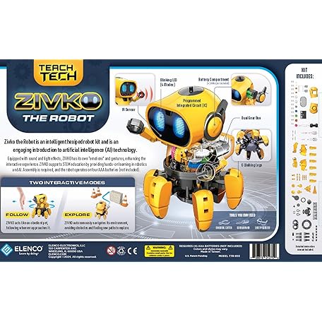 Thông tin sản phẩm Elenco Teach Tech “Zivko The Robot”, Interactive A/I Capable Robot with Infrared Sensor, STEM Learning Toys for Kids 10+, includes Assembly Parts