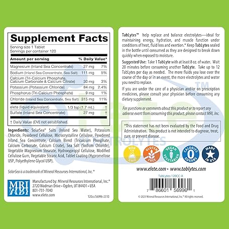 Thông tin sản phẩm elete Electrolyte Tablets for Quick Recovery & Hydration – 9 Essential Electrolytes & Zero Sugar - Electrolyte Supplements for Supporting Energy, Endurance, and Hydration - 120 High Value Servings
