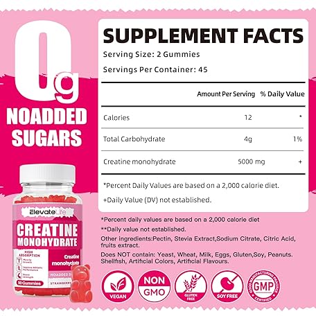 Sản phẩm ElevateLife Creatine Monohydrate Gummies 5000mg for Men & Women, Chewables Creatine Monohydrate for Muscle Strength, Muscle Builder, Energy Boost, Pre-Workout Supplement(90 Count)-Strawberries đang được bán với giá ưu đãi là $23.9691 tại nước Mỹ.