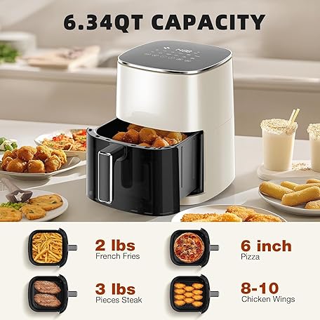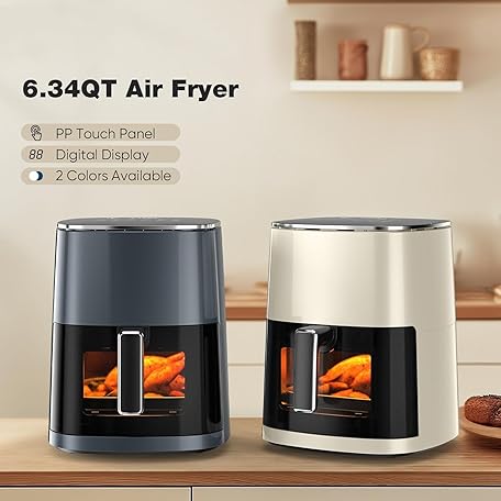 Thông tin sản phẩm Elevon 6QT Large Air Fryer, 12-in-1 Digital Airfryer with Clear Window, Roast, Reheat, Dehydrate, Bake, Steam with 400F and More, Dishwasher Safe, Nonstick, Fit for Family of 2-5, Beige