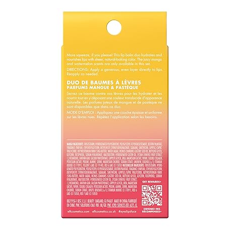 Thông tin sản phẩm e.l.f. Squeeze Me More Lip Balm Duo, Moisturizing Balm For A Sheer Tint Of Color, Made With Hyaluronic Acid, Vegan & Cruelty-Free, Mango & Watermelon