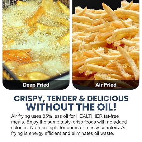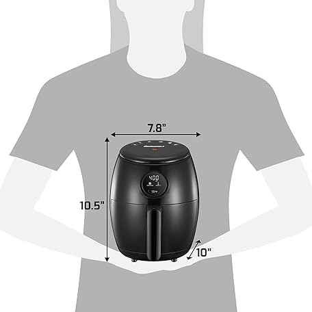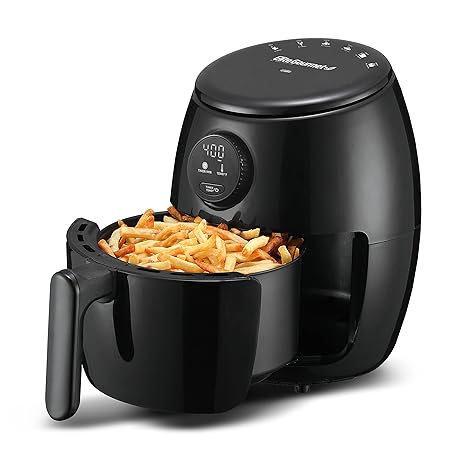Thông tin sản phẩm Elite Gourmet EAF2612D Personal 2.1Qt Compact Space Saving Programmable Hot Air Fryer, Oil-Less Healthy Cooker, Timer & Temperature Controls, 1000W, Black