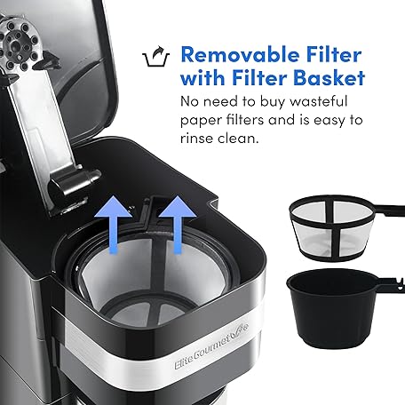 Thông tin sản phẩm Elite Gourmet EHC113 Personal Single-Serve Compact Coffee Maker Brewer Includes 14Oz. Stainless Steel Interior Thermal Travel Mug, Compatible with Coffee Grounds, Reusable Filter, Black