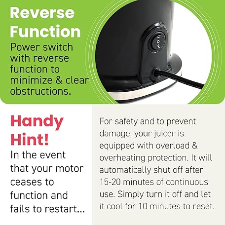 Thông tin sản phẩm Elite Gourmet EJX017 Whole Fruit 3” Feeding Chute, Dynamic Masticating Slow Juicer, High Yield Cold Press Juice Extractor, Nutrient and Vitamin Dense, Easy to Clean, 27 oz Juice Cup, Black