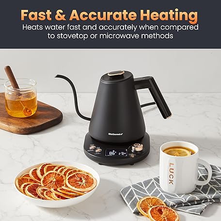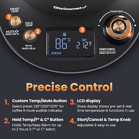 Thông tin sản phẩm Elite Gourmet EKT3001 1L Digital Water Kettle, 304 Stainless Steel Interior, Programmed Temperatures, Keep Warm Function, Cordless, 360° Base, Auto Off & Audible Indicator, Matte Black