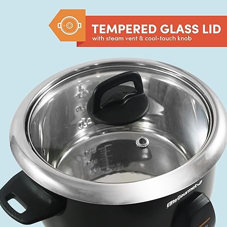 Thông tin sản phẩm Elite Gourmet ERC2001BX 10-Cup Electric Rice Cooker with 304 Surgical Grade Stainless Steel Inner Pot, Makes Soups, Stews, Porridges, Grains and Cereals
