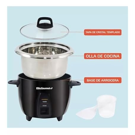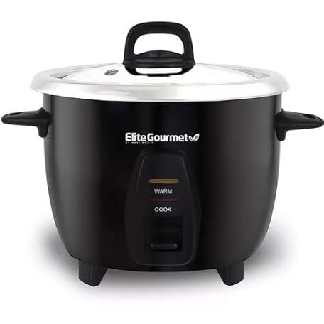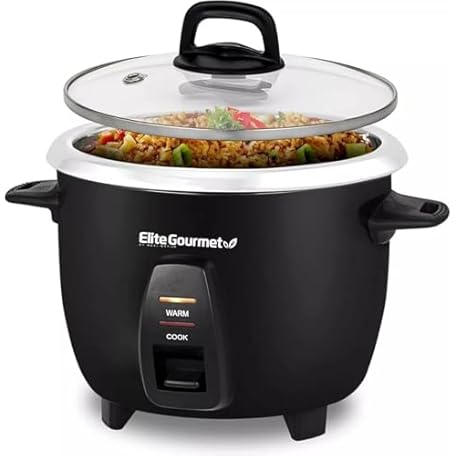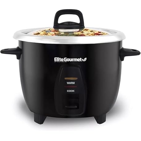 Thông tin sản phẩm Elite Gourmet ERC2010B Electric Rice Cooker with Stainless Steel Inner Pot Makes Soups, Stews, Porridge's, Grains and Cereals, 10 cups cooked (5 Cups uncooked), Black