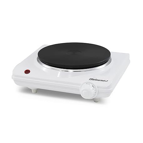 Thông tin sản phẩm Elite Gourmet ESB-301F Countertop Single Cast Iron Burner, 1000 Watts Electric Hot Plate, Temperature Controls, Power Indicator Lights, Easy to Clean, White