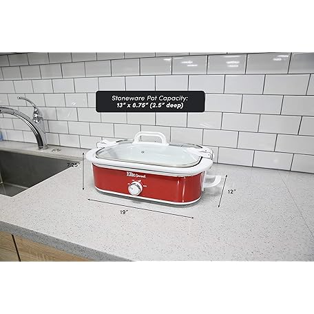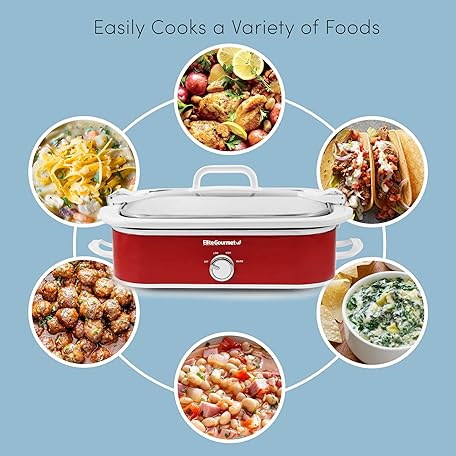 Thông tin sản phẩm Elite Gourmet MST-5240 Casserole Crock Slow Cooker, Locking Lid Adjustable Temperature Keep Warm Oven & Dishwasher-Safe Casserole Pan, 3.5Qt Capacity, Red