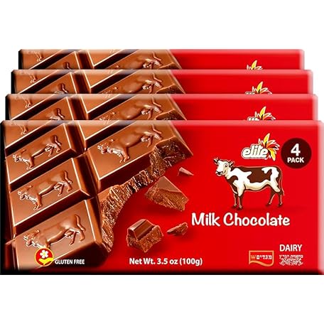 Elite Milk Chocolate Bars, 3.5 oz (4 Pack) | Smooth & Creamy | Premium Rich Milk Chocolate | Gluten-Free | Product of Israel