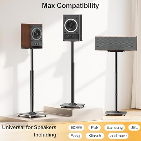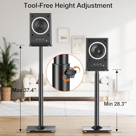 Thông tin sản phẩm ELIVED Universal Speaker Stands Height Adjustable 28"-37.4", Bookshelf Speaker Stand Pair for Satellite Studio Large Speakers Up to 22 lbs, Surround Sound Speaker Stand with Cable Management, Black