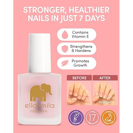 Thông tin sản phẩm ella+mila "First Aid Kiss" Nail Strengthener and Growth treatment- Nail Repair Solution & Growth Treatment for Thin, Brittle & Damaged Nails - Nail Hardener with Vitamin E (0.45 fl oz)