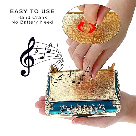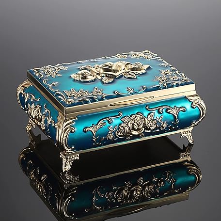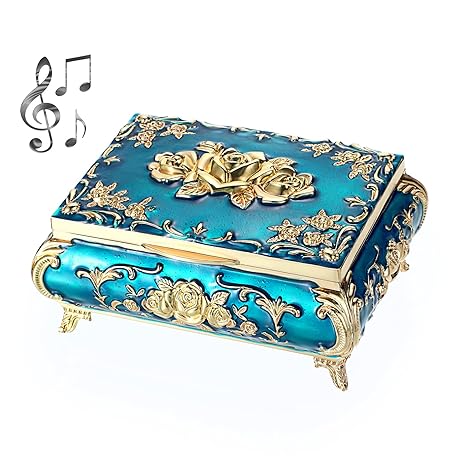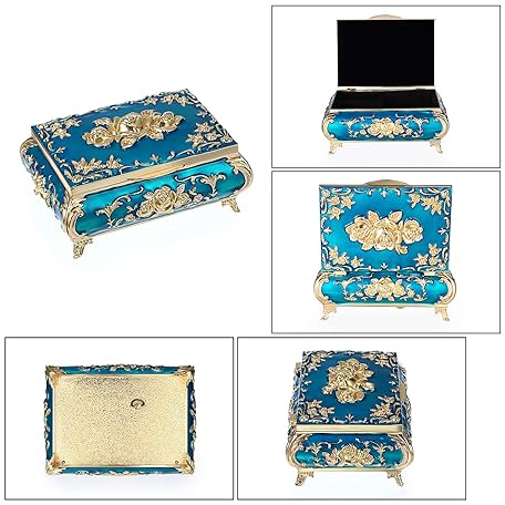 Thông tin sản phẩm ELLDOO Vintage Music Box, Blue Metal Musical Jewelry Box Keepsake Box, Small Trinket Jewelry Storage Box Gift for Girl Women (Tune: You are My Sunshine)