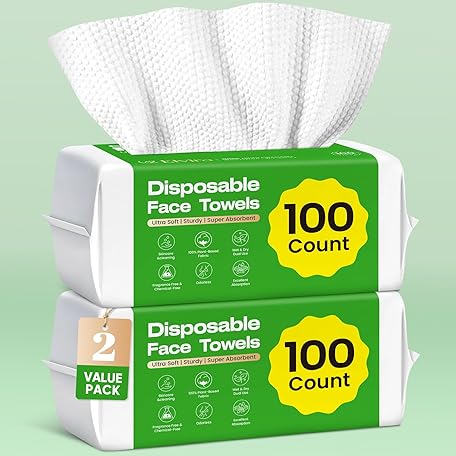 Thông tin sản phẩm Elvira 200 Count (2 Pack) Disposable Face Towels, Biodegradable Facial Cleansing Towels, Ultra Soft & Thick Cloth for Sensitive Skin, Makeup Remover Dry Wipes, Lint-Free Towelettes for Cleansing