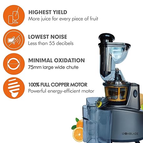 EMB Ironblade IBLJU20 Cold Press Slow Juicer, High-Yield Extraction, Quiet 55dB Operation, 75mm Wide Chute, Full Copper Motor, BPA-Free, Easy to Clean for Fruits & Vegetables