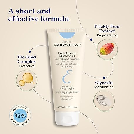 Thông tin sản phẩm Embryolisse Foaming Cream Milk. Hydrating Cleanser for Face and Body, Soap-Free, Vegan Formula, 6.76 Fl Oz