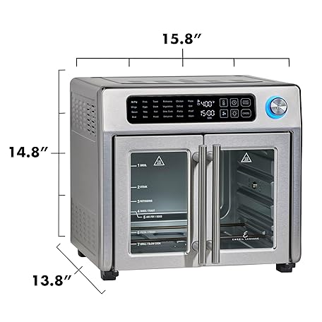 Thông tin sản phẩm Emeril Lagasse Extra Large French Door Air Fryer Toaster Oven Combo, 24 Cooking Functions and Digital Controls, 7 Accessories Included, Stainless Steel Finish, 26QT Capacity
