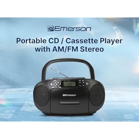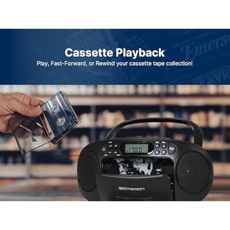 Thông tin sản phẩm Emerson Portable CD Player Boombox with Cassette Player Combo, Tape Recorder, AM/FM Radio, AUX, Headphone Jack, Dual Speakers, AC/DC & Battery Operated - Stereo System for Home, Indoor & Outdoor Use