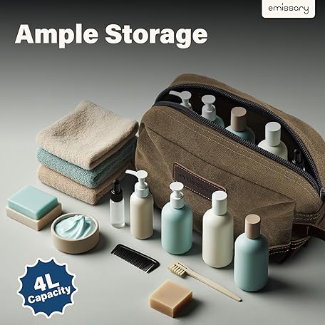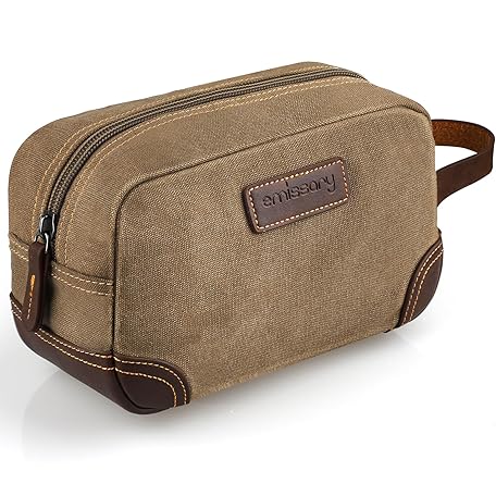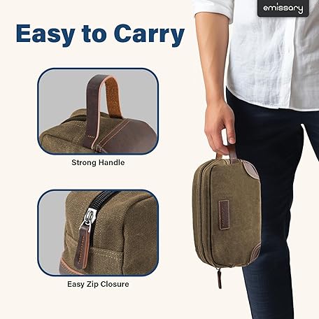 Thông tin sản phẩm Emissary Men's Leather and Canvas Travel Toiletry Bag, Dopp Kit, Travel Bathroom Bag, Shaving Kit, Small Bags for Travel Accessories (Brown)