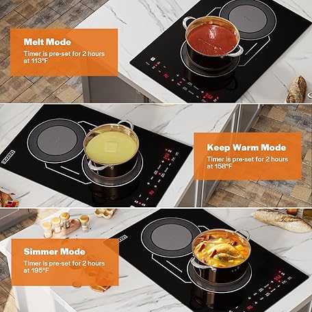 Thông tin sản phẩm Empava Double/Dual Induction Cooktop 2 Burner, Shatter-proof Flat Glass Top, Bridge-SYNC, 3 Preset Modes, Bulit-in/Countertop, 110~120 Volt Plug in Electric Stove for Kitchen, RV, Outdoor Camping