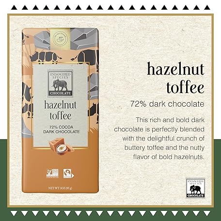 Sản phẩm Endangered Species Dark Chocolate Bar with Hazelnut Toffee (72% cocoa) đang được bán với giá ưu đãi là $68.6591 tại nước Mỹ.