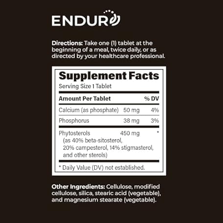 Thông tin sản phẩm Endur Phytosterols, Promotes Heart & Prostate Health for Men, Helps Block Cholesterol Absorption & Support Urinary Comfort, 450mg (180 Tablets)