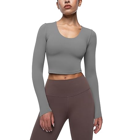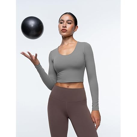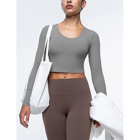 • ENERBLOOM Long Sleeve Shirts Crop Tops Athletic Top U-Neck