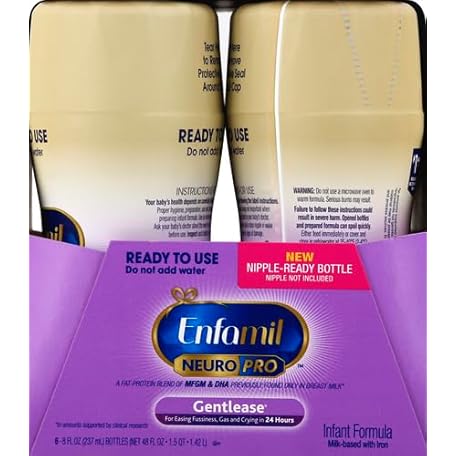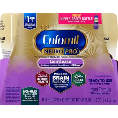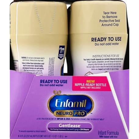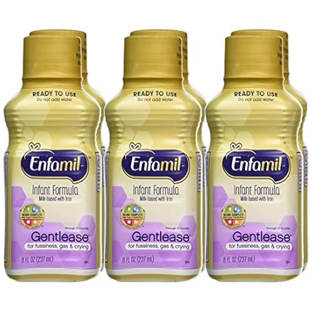 Enfamil Gentlease Baby Formula, Reduces Fussiness, Crying, Gas and Spit-up in 24 hours, DHA & Choline to support Brain development, Ready-to-Use 8 Fl Oz, Pack of 6, Total 48 Fl Oz