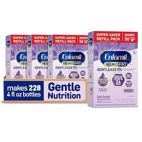 Thông tin sản phẩm Enfamil NeuroPro Gentlease Baby Formula, Brain Building DHA, HuMO6 Immune Blend, Designed to Reduce Fussiness, Crying, Gas & Spit-up in 24 Hrs, has Prebiotics to Promote Softer Stools, Baby Milk, 35.2 Oz (Pack of 4)