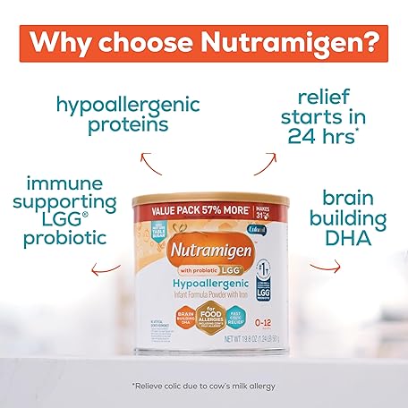 Thông tin sản phẩm Enfamil Nutramigen Hypoallergenic Baby Formula with Iron, Lactose Free, Colic Relief from Cow's Milk Allergy Starts in 24 Hours, Brain Building DHA, Probiotic LGG for Immune Support, 19.8 Oz Can