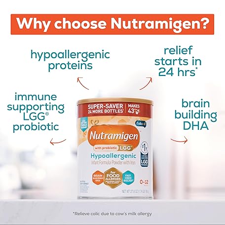 Thông tin sản phẩm Enfamil Nutramigen Hypoallergenic Baby Formula with Iron, Lactose Free, Colic Relief from Cow's Milk Allergy Starts in 24 Hours, Brain Building DHA, Probiotic LGG for Immune Support, 27.8 Oz Can
