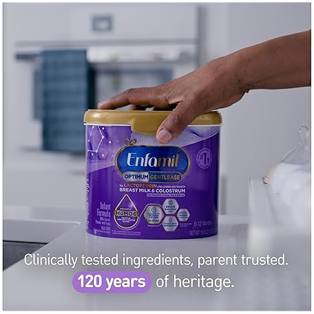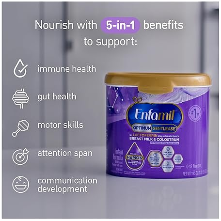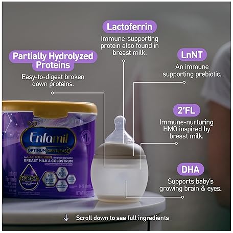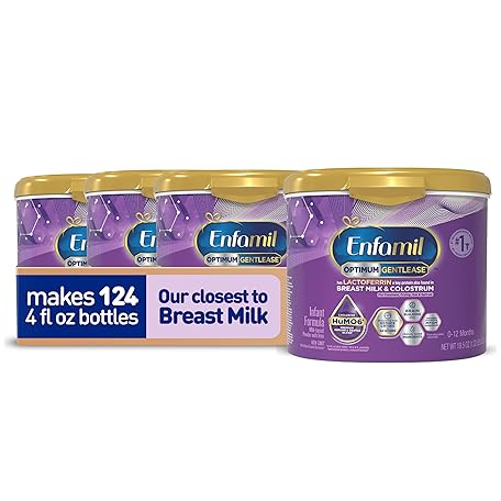 Thông tin sản phẩm Enfamil Optimum Gentlease Baby Formula, Our Closest Formula to Breast Milk For Fussiness, Crying, Gas & Spit-up, Immune-Supporting Lactoferrin also found in Breast Milk, 19.5 Oz, Pack of 4