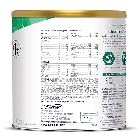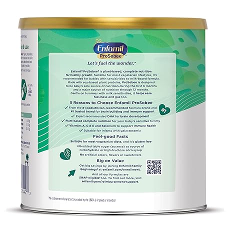 Thông tin sản phẩm Enfamil Prosobee Plant based Baby Formula, for Sensitive Tummies, Soy-based Plant Sourced Protein, Vitamins for Immune Support, Lactose-free, Milk free, Gluten free, 20.9 Oz Can
