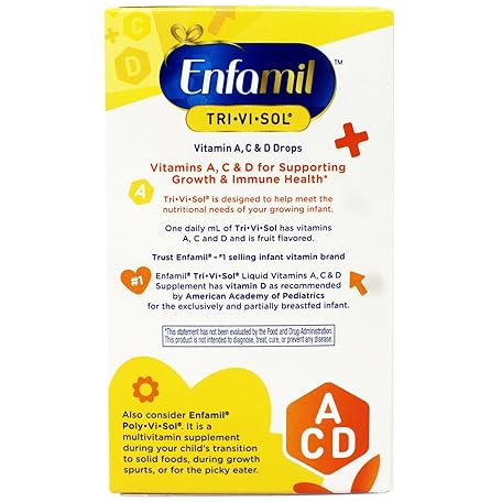 Thông tin sản phẩm Enfamil Tri-Vi-Sol Vitamin A, C & D Multi-Vitamin Drops for Infants, Supports Growth & Immune Health, 50 mL Dropper Bottle (Pack of 2)